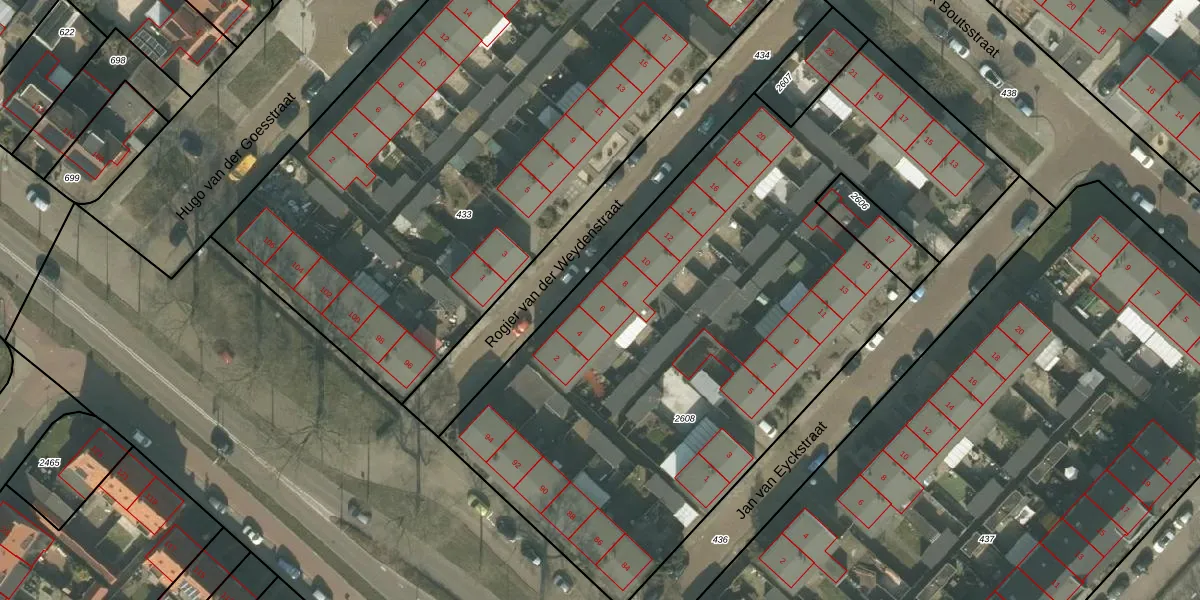 Rogier van der Weydenstraat 6 is gelegen op kadastraal perceel HMD00E2608. Deze kadastrale aanduiding is uniek en wordt gebruikt door het Kadaster om eigendomsrechten en andere zakelijke rechten vast te leggen. Het perceel maakt onderdeel uit van de kadastrale gemeente Helmond.