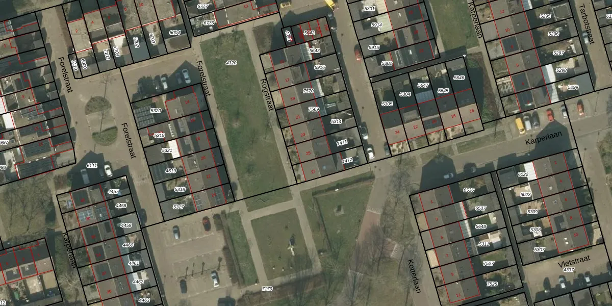 Gebruik de zoekbalk of klik op een perceel voor informatie over de adressen binnen dit perceel.