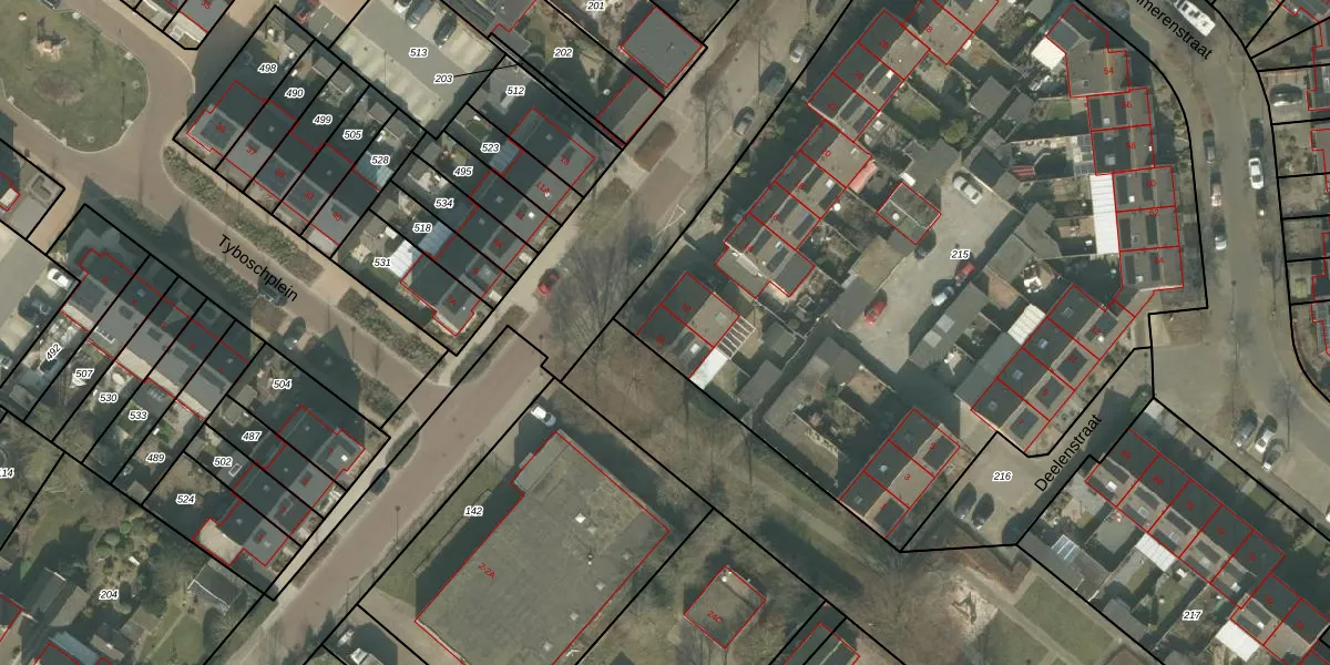 Het adres is gelegen op perceel 215 in de sectie C en de kadastrale gemeente Stiphout. De kadastrale aanduiding is aldus SHT01-C-215. Het perceel is met 4900 m² relatief groot. Het gemiddelde ligt in de kadastrale gemeente Stiphout op 2498,43 m². De grootste perceeloppervlakte in de kadastrale gemeente is 93,5 ha. De kleinste oppervlakte bedraagt 1 m². Op het perceel liggen in totaal 24 adressen. In de Basisregistratie Kadaster (BRK) werden de grenzen van het perceel geregistreerd op 30-06-2011.