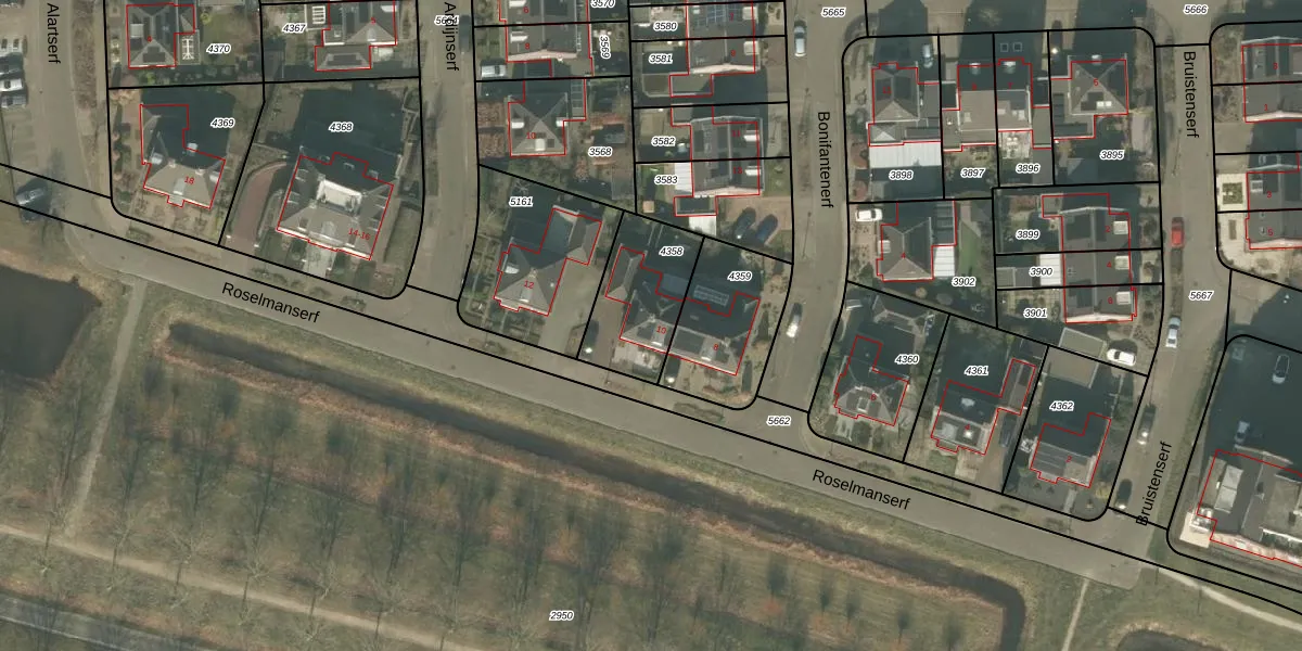 Het perceel waarop Roselmanserf 10 staat heeft een oppervlakte van 312 m². Dit is een groot perceel. De perceeloppervlakte wordt geregistreerd door het Kadaster. Gedetailleerde informatie over de maten van dit perceel kunt u vinden in het rapport Kadastrale kaart met maatvoering van Roselmanserf 10.
