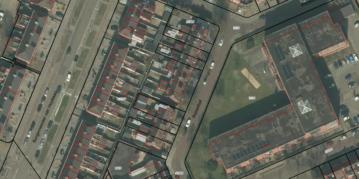 Rozenhof 10 is gelegen op kadastraal perceel HMD00C11756. Deze kadastrale aanduiding is uniek en wordt gebruikt door het Kadaster om eigendomsrechten en andere zakelijke rechten vast te leggen. Het perceel maakt onderdeel uit van de kadastrale gemeente Helmond.