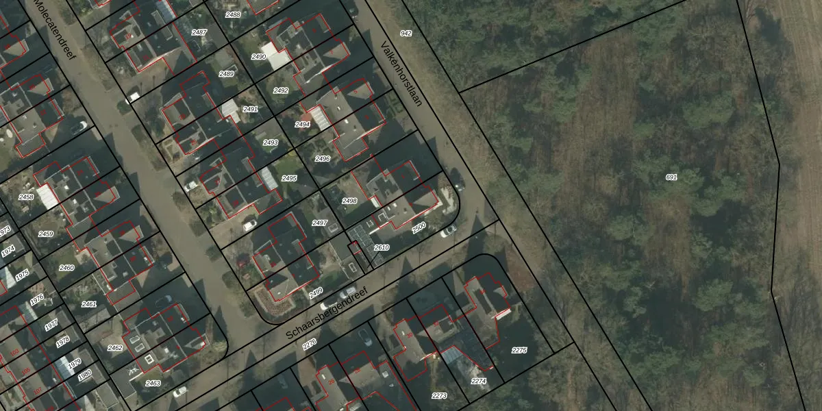 Schaarsbergendreef 9 is gelegen op kadastraal perceel HMD00Q2500. Deze kadastrale aanduiding is uniek en wordt gebruikt door het Kadaster om eigendomsrechten en andere zakelijke rechten vast te leggen. Het perceel maakt onderdeel uit van de kadastrale gemeente Helmond.