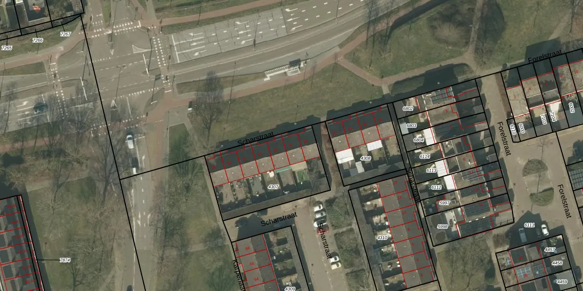 Het perceel waarop Scharstraat 26 staat heeft een oppervlakte van 882 m². Dit is een groot perceel. De perceeloppervlakte wordt geregistreerd door het Kadaster. Gedetailleerde informatie over de maten van dit perceel kunt u vinden in het rapport Kadastrale kaart met maatvoering van Scharstraat 26.