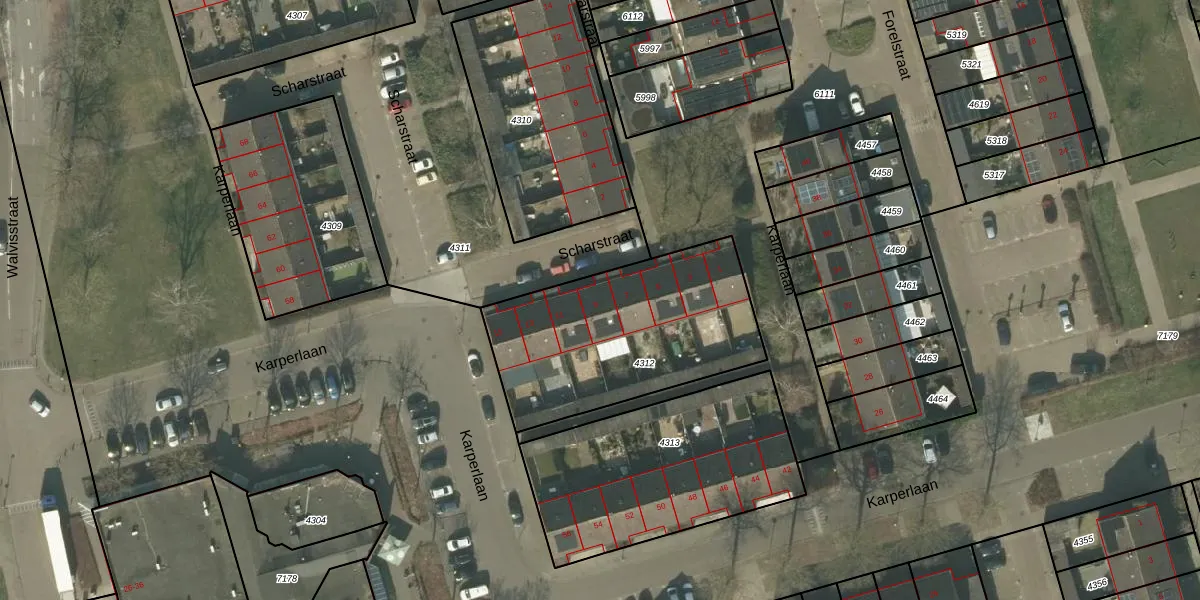 Scharstraat 9 is gelegen op kadastraal perceel HMD00T4312. Deze kadastrale aanduiding is uniek en wordt gebruikt door het Kadaster om eigendomsrechten en andere zakelijke rechten vast te leggen. Het perceel maakt onderdeel uit van de kadastrale gemeente Helmond.