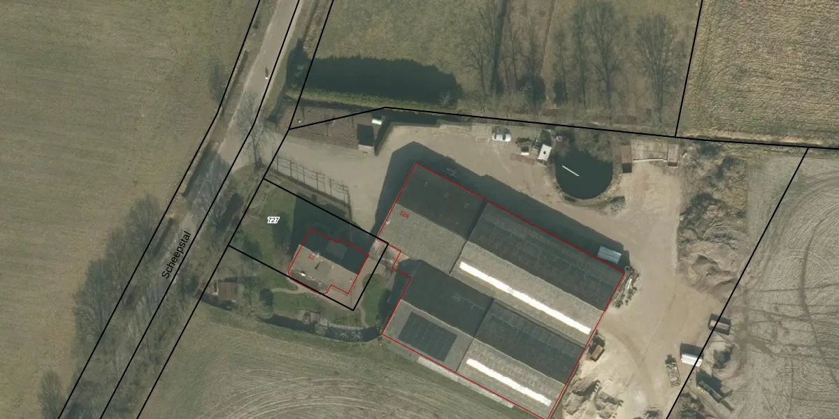 Het perceel waarop Scheepstal 12-A staat heeft een oppervlakte van 1,4 ha. Dit is een zeer groot perceel. De perceeloppervlakte wordt geregistreerd door het Kadaster. Gedetailleerde informatie over de maten van dit perceel kunt u vinden in het rapport Kadastrale kaart met maatvoering van Scheepstal 12-A.