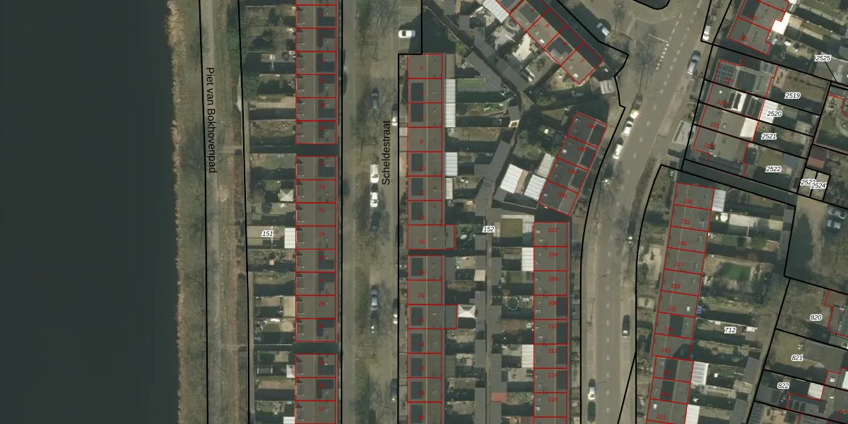 Het perceel waarop Scheldestraat 14 staat heeft een oppervlakte van 6135 m². Dit is een zeer groot perceel. De perceeloppervlakte wordt geregistreerd door het Kadaster. Gedetailleerde informatie over de maten van dit perceel kunt u vinden in het rapport Kadastrale kaart met maatvoering van Scheldestraat 14.