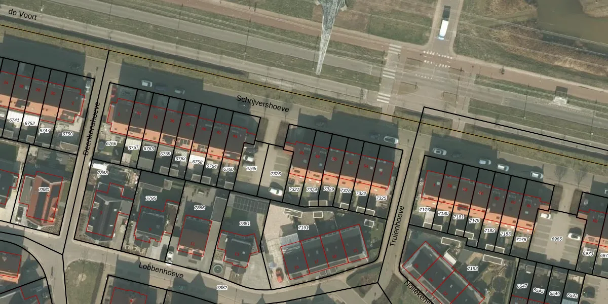 Het perceel waarop Schrijvershoeve 46 staat heeft een oppervlakte van 174 m². Dit is een middelgroot perceel. De perceeloppervlakte wordt geregistreerd door het Kadaster. Gedetailleerde informatie over de maten van dit perceel kunt u vinden in het rapport Kadastrale kaart met maatvoering van Schrijvershoeve 46.