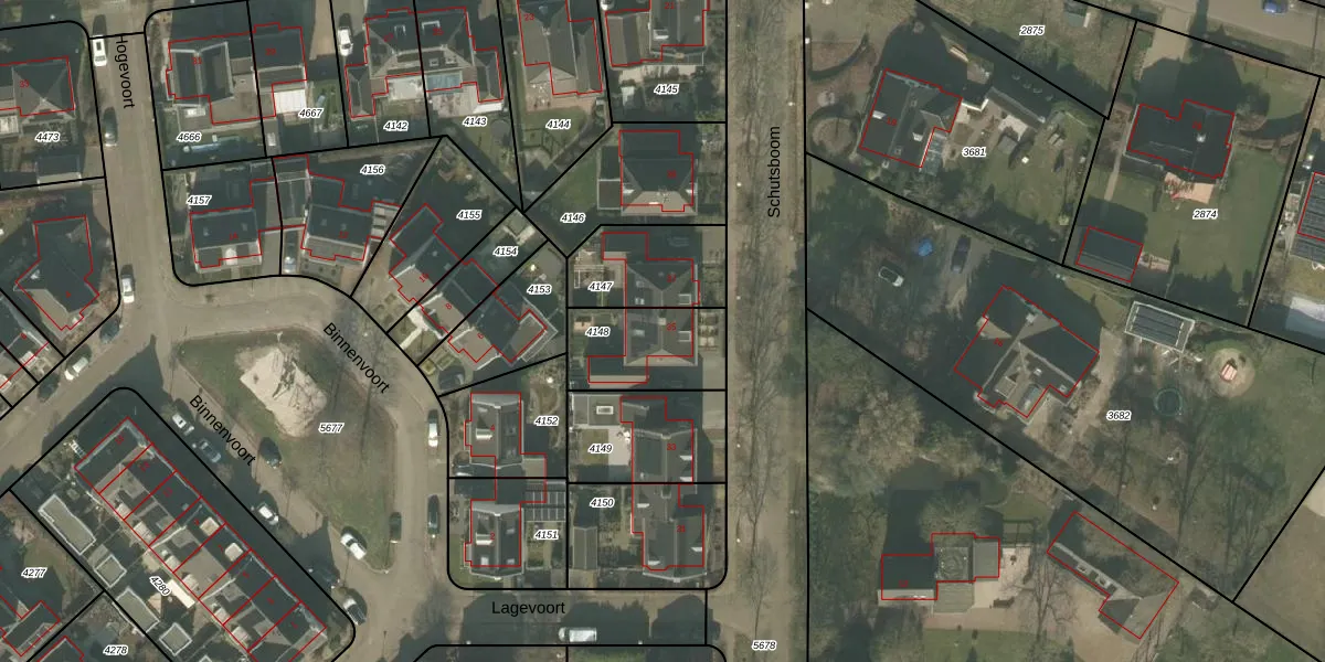 Het perceel waarop Schutsboom 35 staat heeft een oppervlakte van 300 m². Dit is een groot perceel. De perceeloppervlakte wordt geregistreerd door het Kadaster. Gedetailleerde informatie over de maten van dit perceel kunt u vinden in het rapport Kadastrale kaart met maatvoering van Schutsboom 35.