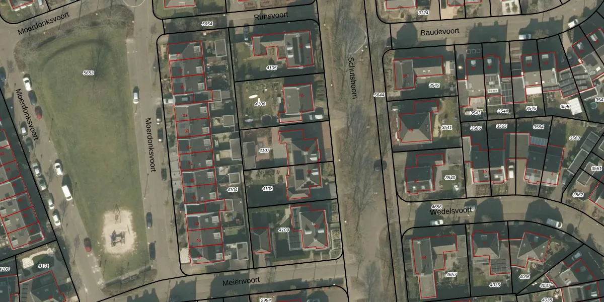 Het perceel waarop Schutsboom 53 staat heeft een oppervlakte van 405 m². Dit is een groot perceel. De perceeloppervlakte wordt geregistreerd door het Kadaster. Gedetailleerde informatie over de maten van dit perceel kunt u vinden in het rapport Kadastrale kaart met maatvoering van Schutsboom 53.