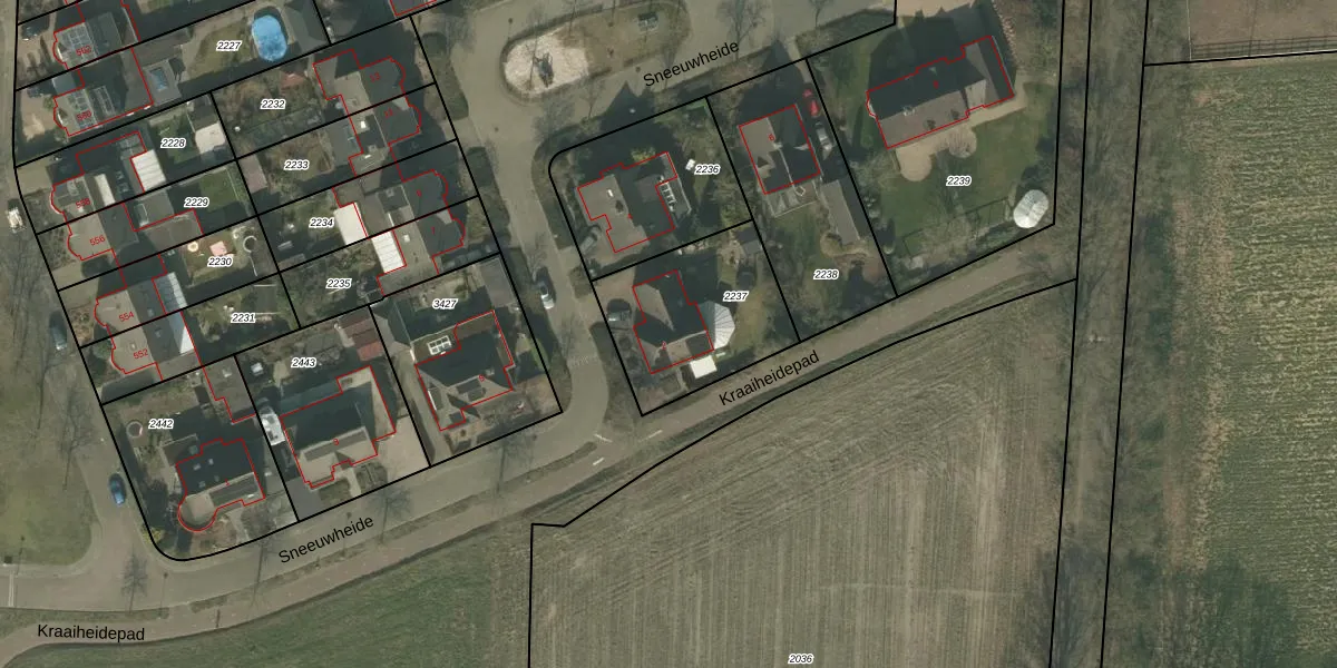 Het perceel waarop Sneeuwheide 2 staat heeft een oppervlakte van 537 m². Dit is een groot perceel. De perceeloppervlakte wordt geregistreerd door het Kadaster. Gedetailleerde informatie over de maten van dit perceel kunt u vinden in het rapport Kadastrale kaart met maatvoering van Sneeuwheide 2.