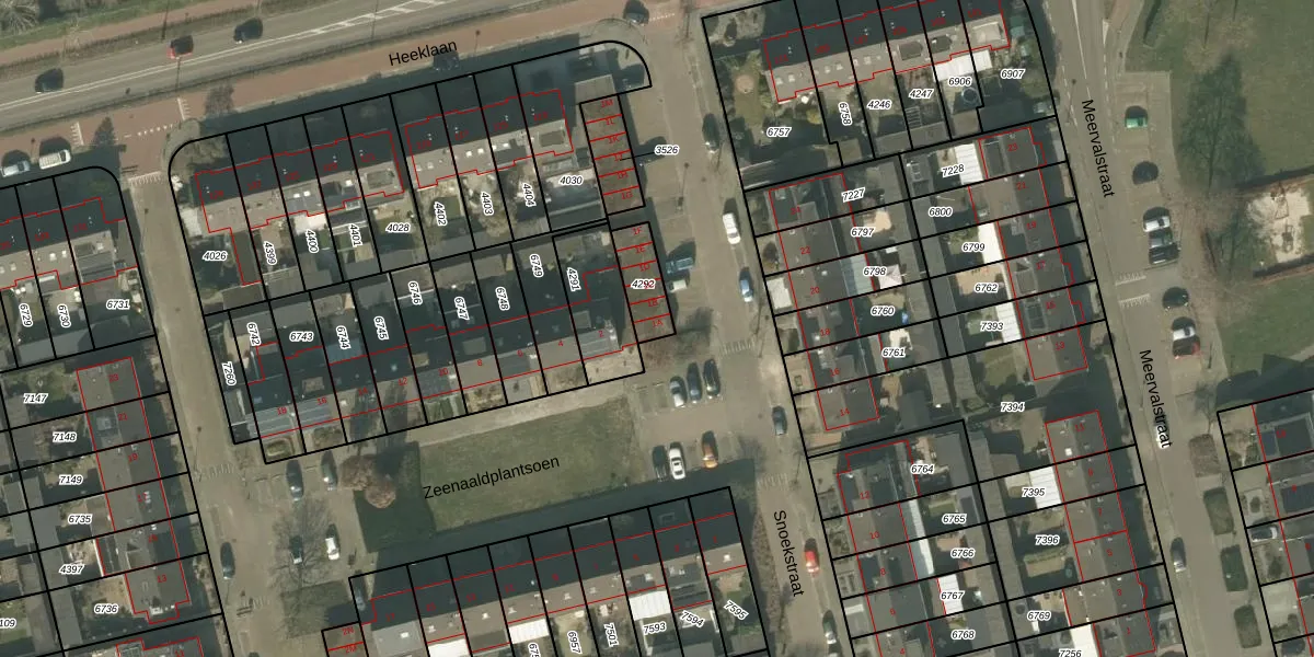 Snoekstraat 1-A is gelegen op kadastraal perceel HMD00T4292. Deze kadastrale aanduiding is uniek en wordt gebruikt door het Kadaster om eigendomsrechten en andere zakelijke rechten vast te leggen. Het perceel maakt onderdeel uit van de kadastrale gemeente Helmond.