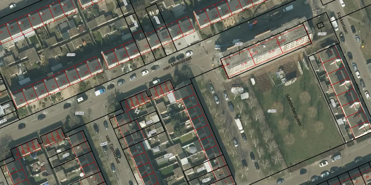Soesterbergplein 1 is gelegen op kadastraal perceel HMD00C10412. Deze kadastrale aanduiding is uniek en wordt gebruikt door het Kadaster om eigendomsrechten en andere zakelijke rechten vast te leggen. Het perceel maakt onderdeel uit van de kadastrale gemeente Helmond.