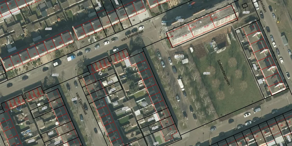 Het perceel waarop Soesterbergplein 3 staat heeft een oppervlakte van 2241 m². Dit is een zeer groot perceel. De perceeloppervlakte wordt geregistreerd door het Kadaster. Gedetailleerde informatie over de maten van dit perceel kunt u vinden in het rapport Kadastrale kaart met maatvoering van Soesterbergplein 3.