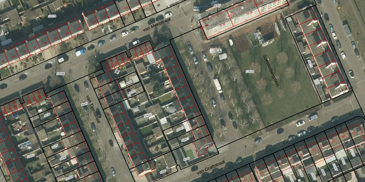 Het perceel waarop Soesterbergplein 5 staat heeft een oppervlakte van 2241 m². Dit is een zeer groot perceel. De perceeloppervlakte wordt geregistreerd door het Kadaster. Gedetailleerde informatie over de maten van dit perceel kunt u vinden in het rapport Kadastrale kaart met maatvoering van Soesterbergplein 5.