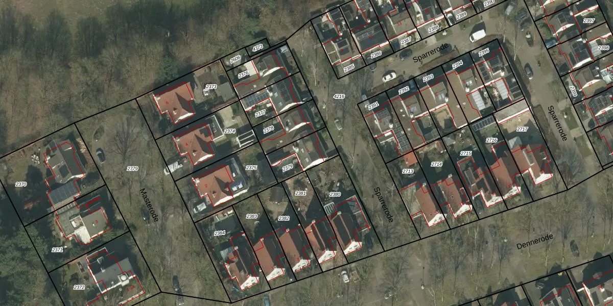 Sparrerode 1 is gelegen op kadastraal perceel HMD00N2379. Deze kadastrale aanduiding is uniek en wordt gebruikt door het Kadaster om eigendomsrechten en andere zakelijke rechten vast te leggen. Het perceel maakt onderdeel uit van de kadastrale gemeente Helmond.