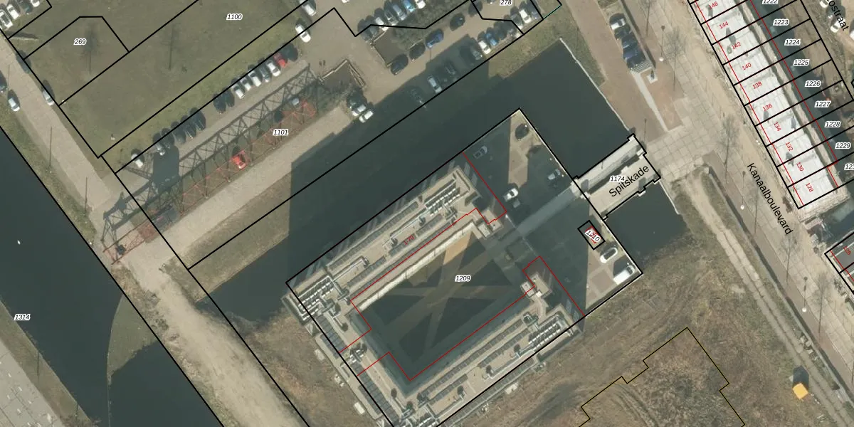 Het perceel waarop Spitskade 10 staat heeft een oppervlakte van 3270 m². Dit is een zeer groot perceel. De perceeloppervlakte wordt geregistreerd door het Kadaster. Gedetailleerde informatie over de maten van dit perceel kunt u vinden in het rapport Kadastrale kaart met maatvoering van Spitskade 10.