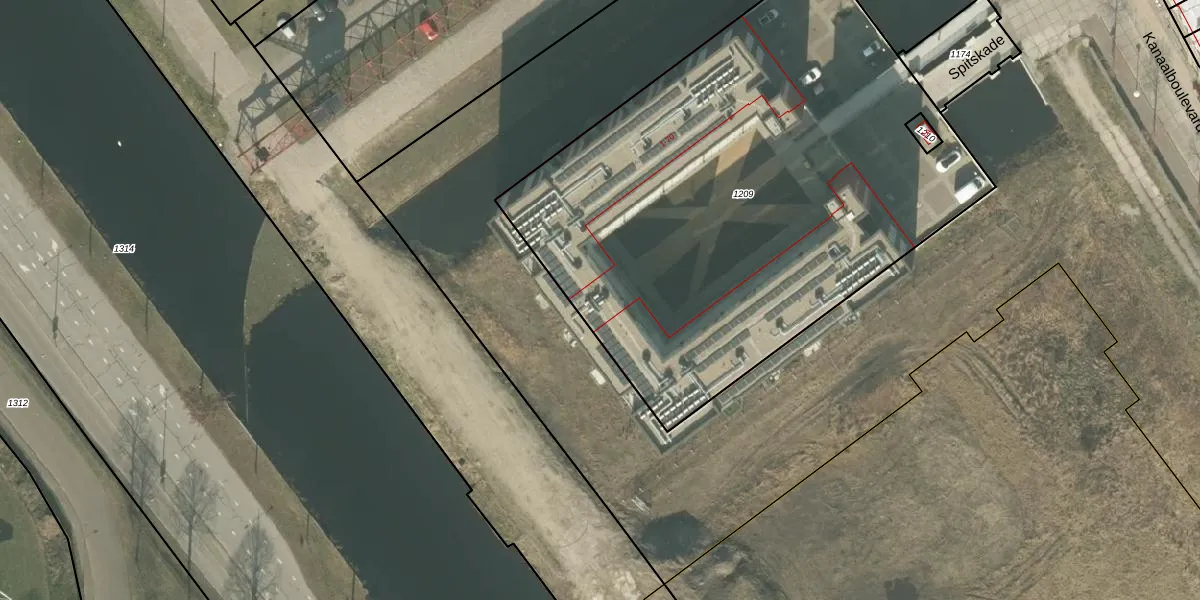 Het perceel waarop Spitskade 16 staat heeft een oppervlakte van 3270 m². Dit is een zeer groot perceel. De perceeloppervlakte wordt geregistreerd door het Kadaster. Gedetailleerde informatie over de maten van dit perceel kunt u vinden in het rapport Kadastrale kaart met maatvoering van Spitskade 16.