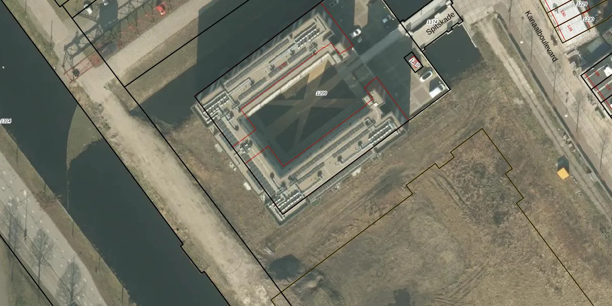 Het perceel waarop Spitskade 41 staat heeft een oppervlakte van 3270 m². Dit is een zeer groot perceel. De perceeloppervlakte wordt geregistreerd door het Kadaster. Gedetailleerde informatie over de maten van dit perceel kunt u vinden in het rapport Kadastrale kaart met maatvoering van Spitskade 41.