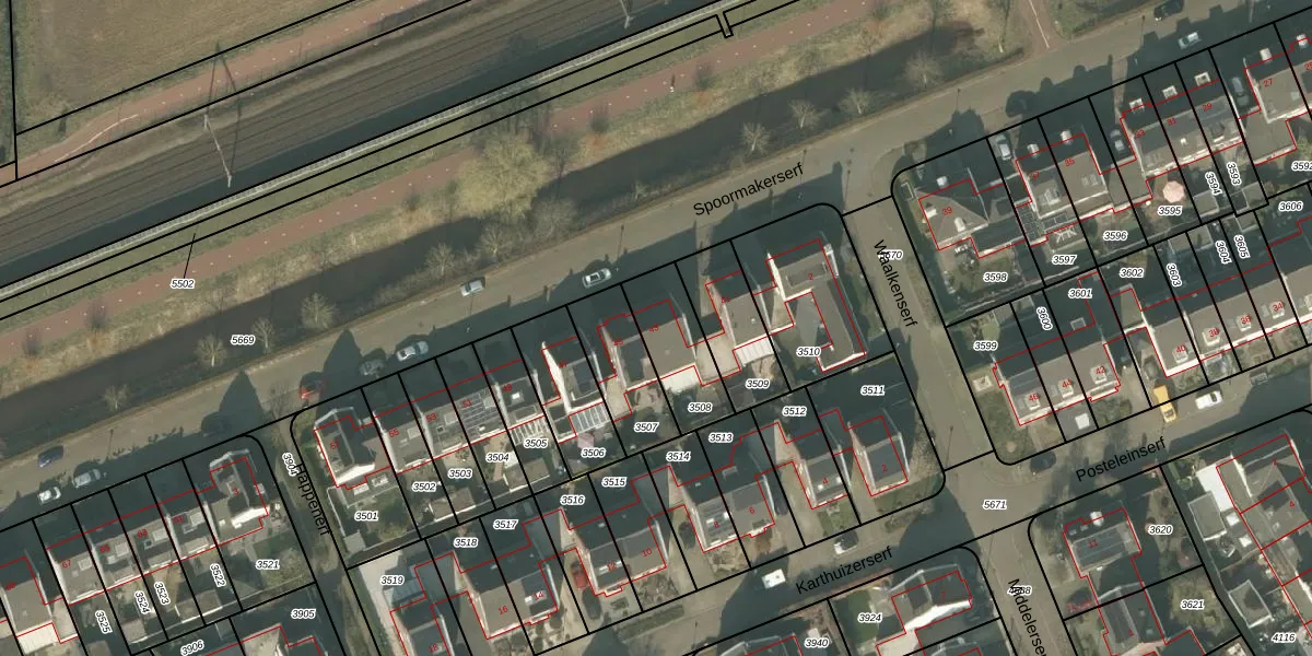 Het perceel waarop Spoormakerserf 43 staat heeft een oppervlakte van 223 m². Dit is een middelgroot perceel. De perceeloppervlakte wordt geregistreerd door het Kadaster. Gedetailleerde informatie over de maten van dit perceel kunt u vinden in het rapport Kadastrale kaart met maatvoering van Spoormakerserf 43.