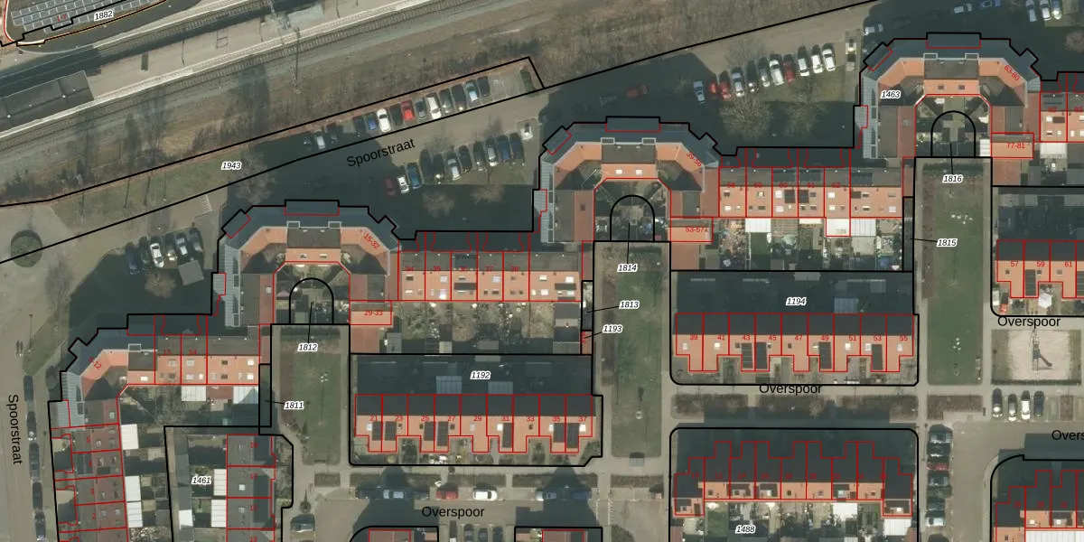 Het perceel waarop Spoorstraat 39 staat heeft een oppervlakte van 8581 m². Dit is een zeer groot perceel. De perceeloppervlakte wordt geregistreerd door het Kadaster. Gedetailleerde informatie over de maten van dit perceel kunt u vinden in het rapport Kadastrale kaart met maatvoering van Spoorstraat 39.