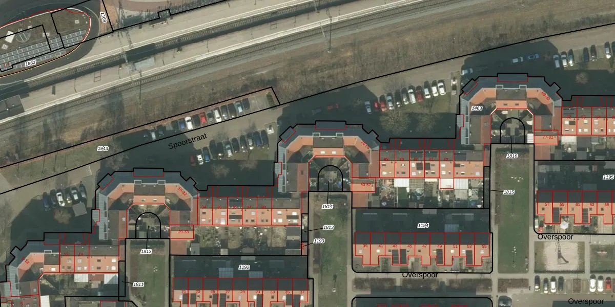 Het perceel waarop Spoorstraat 49 staat heeft een oppervlakte van 8581 m². Dit is een zeer groot perceel. De perceeloppervlakte wordt geregistreerd door het Kadaster. Gedetailleerde informatie over de maten van dit perceel kunt u vinden in het rapport Kadastrale kaart met maatvoering van Spoorstraat 49.