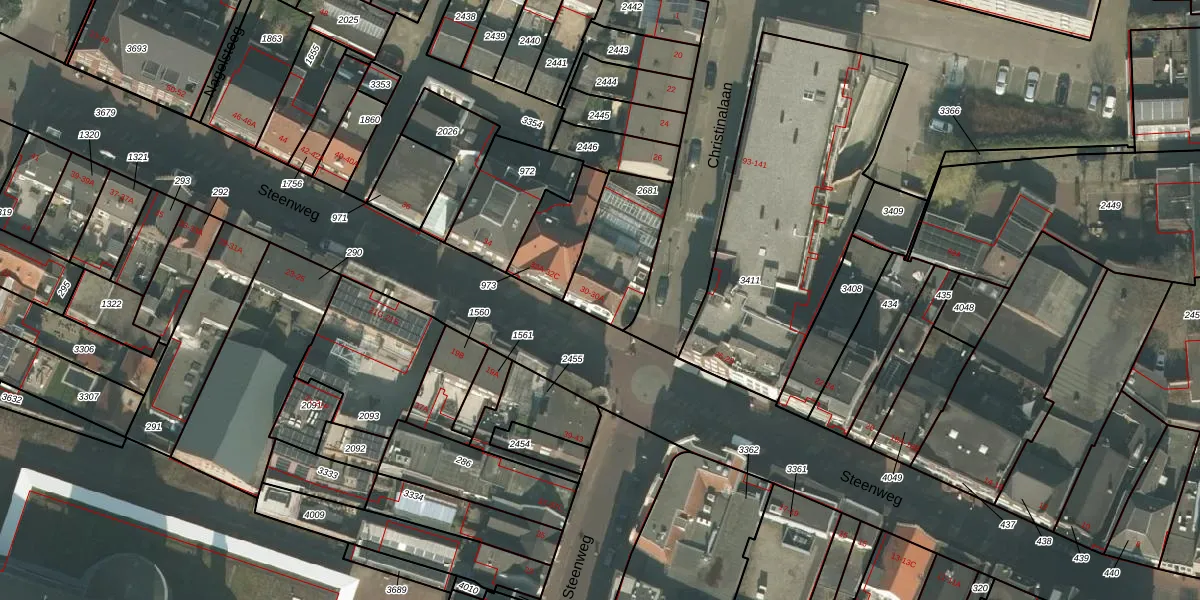 Het perceel waarop Steenweg 30 staat heeft een oppervlakte van 287 m². Dit is een middelgroot perceel. De perceeloppervlakte wordt geregistreerd door het Kadaster. Gedetailleerde informatie over de maten van dit perceel kunt u vinden in het rapport Kadastrale kaart met maatvoering van Steenweg 30.