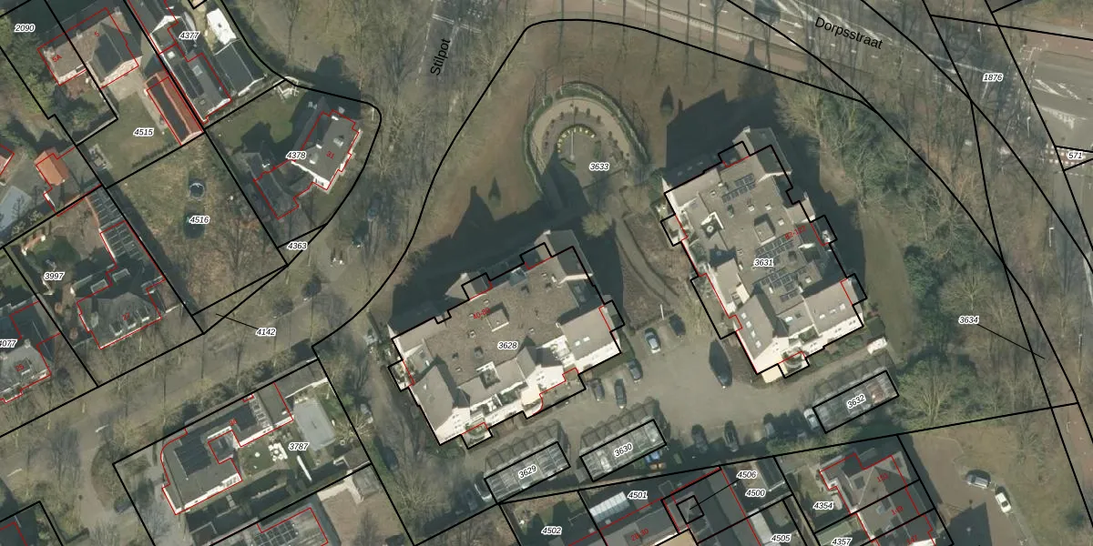Het perceel waarop Stilpot 74 staat heeft een oppervlakte van 915 m². Dit is een groot perceel. De perceeloppervlakte wordt geregistreerd door het Kadaster. Gedetailleerde informatie over de maten van dit perceel kunt u vinden in het rapport Kadastrale kaart met maatvoering van Stilpot 74.