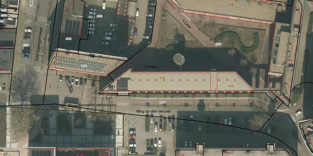 Het perceel waarop 't Cour 14 staat heeft een oppervlakte van 6577 m². Dit is een zeer groot perceel. De perceeloppervlakte wordt geregistreerd door het Kadaster. Gedetailleerde informatie over de maten van dit perceel kunt u vinden in het rapport Kadastrale kaart met maatvoering van 't Cour 14.