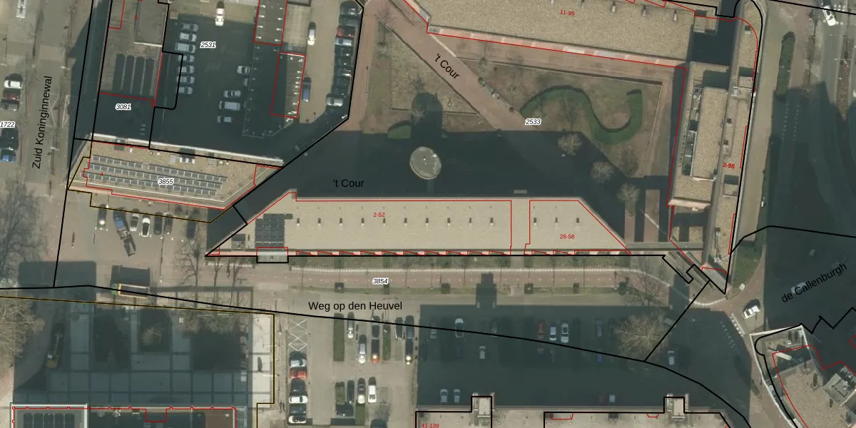Het perceel waarop 't Cour 20 staat heeft een oppervlakte van 6577 m². Dit is een zeer groot perceel. De perceeloppervlakte wordt geregistreerd door het Kadaster. Gedetailleerde informatie over de maten van dit perceel kunt u vinden in het rapport Kadastrale kaart met maatvoering van 't Cour 20.