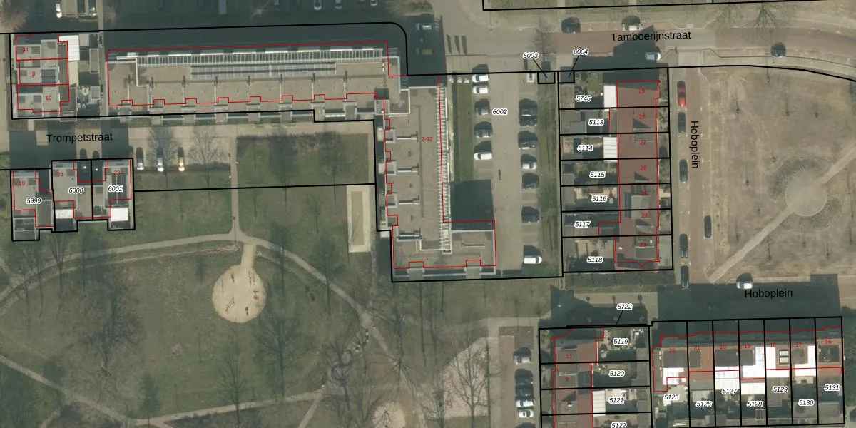 Het perceel waarop Tamboerijnstraat 6 staat heeft een oppervlakte van 3862 m². Dit is een zeer groot perceel. De perceeloppervlakte wordt geregistreerd door het Kadaster. Gedetailleerde informatie over de maten van dit perceel kunt u vinden in het rapport Kadastrale kaart met maatvoering van Tamboerijnstraat 6.