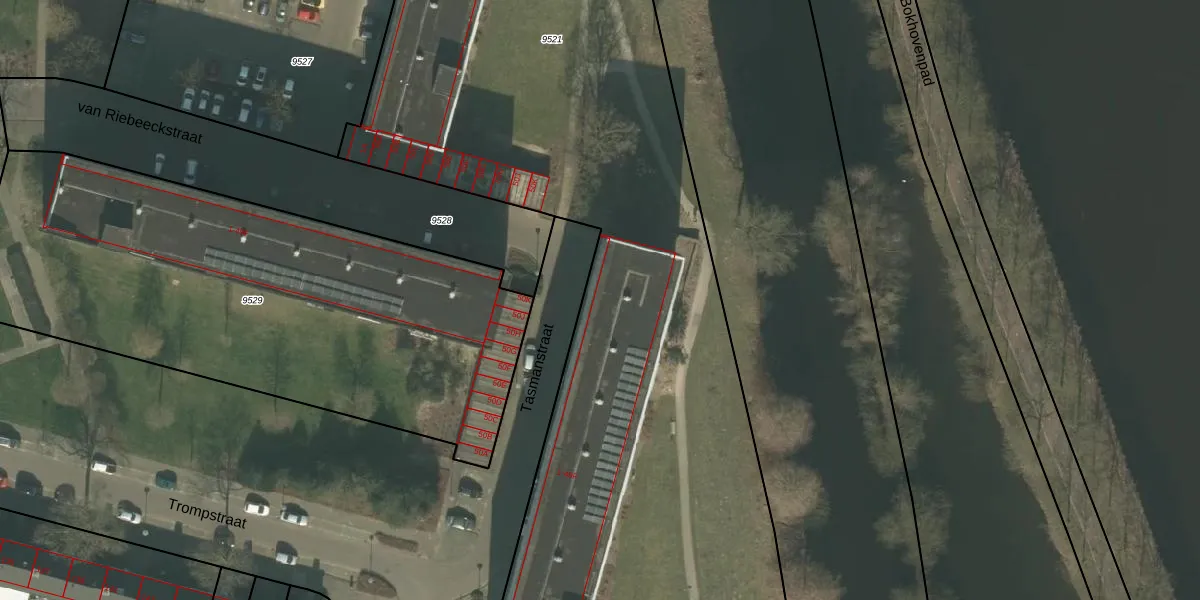 Het perceel waarop Tasmanstraat 49-E staat heeft een oppervlakte van 1,0 ha. Dit is een zeer groot perceel. De perceeloppervlakte wordt geregistreerd door het Kadaster. Gedetailleerde informatie over de maten van dit perceel kunt u vinden in het rapport Kadastrale kaart met maatvoering van Tasmanstraat 49-E.