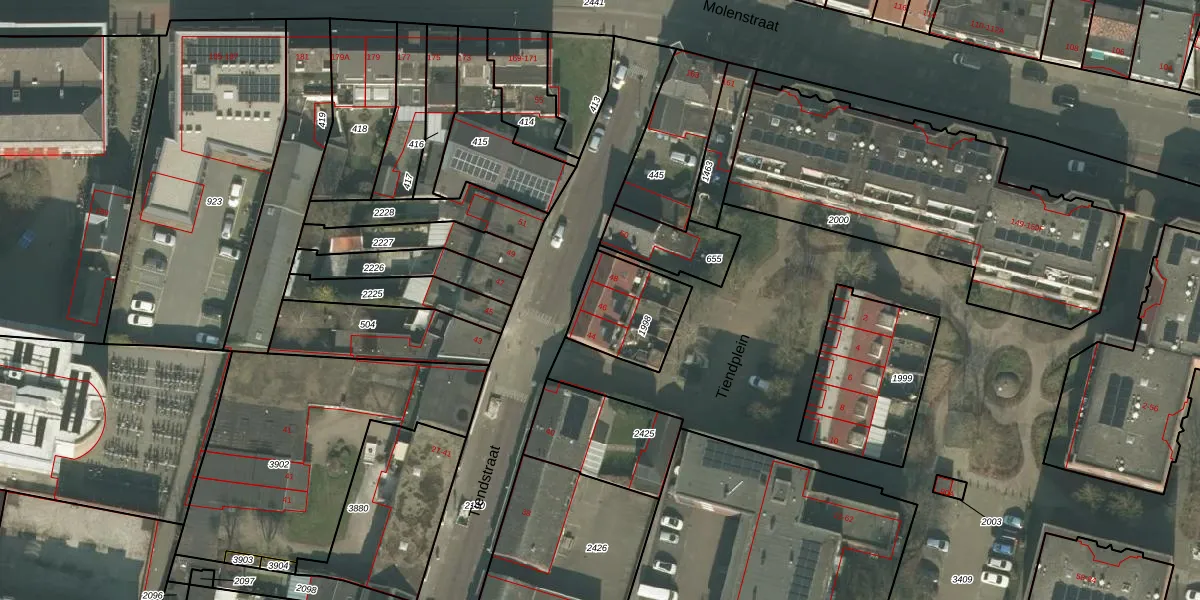 Het perceel waarop Tiendstraat 46 staat heeft een oppervlakte van 264 m². Dit is een middelgroot perceel. De perceeloppervlakte wordt geregistreerd door het Kadaster. Gedetailleerde informatie over de maten van dit perceel kunt u vinden in het rapport Kadastrale kaart met maatvoering van Tiendstraat 46.
