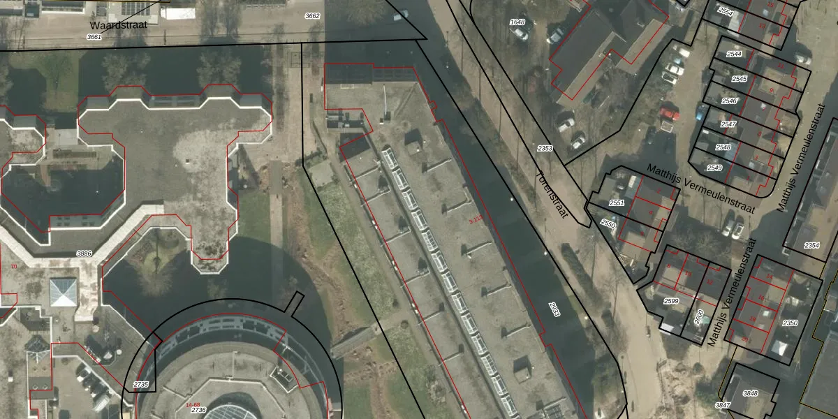 Het perceel waarop Torenstraat 21 staat heeft een oppervlakte van 4705 m². Dit is een zeer groot perceel. De perceeloppervlakte wordt geregistreerd door het Kadaster. Gedetailleerde informatie over de maten van dit perceel kunt u vinden in het rapport Kadastrale kaart met maatvoering van Torenstraat 21.