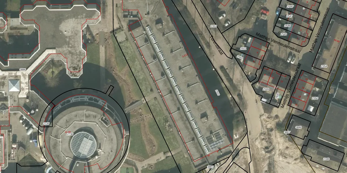 Het perceel waarop Torenstraat 57 staat heeft een oppervlakte van 4705 m². Dit is een zeer groot perceel. De perceeloppervlakte wordt geregistreerd door het Kadaster. Gedetailleerde informatie over de maten van dit perceel kunt u vinden in het rapport Kadastrale kaart met maatvoering van Torenstraat 57.