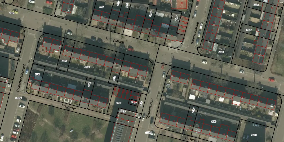 Het perceel waarop Trompstraat 103 staat heeft een oppervlakte van 2556 m². Dit is een zeer groot perceel. De perceeloppervlakte wordt geregistreerd door het Kadaster. Gedetailleerde informatie over de maten van dit perceel kunt u vinden in het rapport Kadastrale kaart met maatvoering van Trompstraat 103.