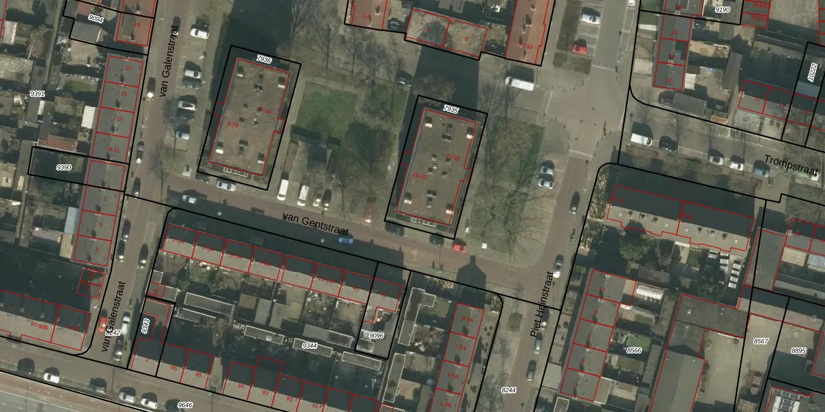 Het perceel waarop Trompstraat 21 staat heeft een oppervlakte van 561 m². Dit is een groot perceel. De perceeloppervlakte wordt geregistreerd door het Kadaster. Gedetailleerde informatie over de maten van dit perceel kunt u vinden in het rapport Kadastrale kaart met maatvoering van Trompstraat 21.