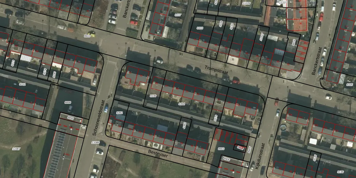 Het perceel waarop Trompstraat 89 staat heeft een oppervlakte van 2556 m². Dit is een zeer groot perceel. De perceeloppervlakte wordt geregistreerd door het Kadaster. Gedetailleerde informatie over de maten van dit perceel kunt u vinden in het rapport Kadastrale kaart met maatvoering van Trompstraat 89.