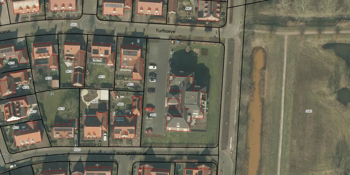 Het perceel waarop Turfhoeve 12 staat heeft een oppervlakte van 2725 m². Dit is een zeer groot perceel. De perceeloppervlakte wordt geregistreerd door het Kadaster. Gedetailleerde informatie over de maten van dit perceel kunt u vinden in het rapport Kadastrale kaart met maatvoering van Turfhoeve 12.