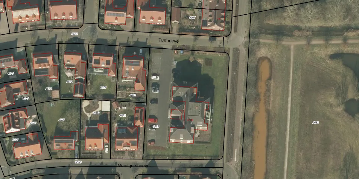 Het perceel waarop Turfhoeve 28 staat heeft een oppervlakte van 2725 m². Dit is een zeer groot perceel. De perceeloppervlakte wordt geregistreerd door het Kadaster. Gedetailleerde informatie over de maten van dit perceel kunt u vinden in het rapport Kadastrale kaart met maatvoering van Turfhoeve 28.