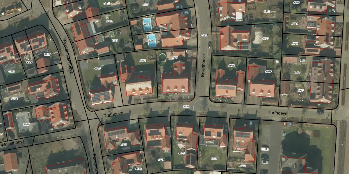 Turfhoeve 5 is gelegen op kadastraal perceel HMD00U4831. Deze kadastrale aanduiding is uniek en wordt gebruikt door het Kadaster om eigendomsrechten en andere zakelijke rechten vast te leggen. Het perceel maakt onderdeel uit van de kadastrale gemeente Helmond.