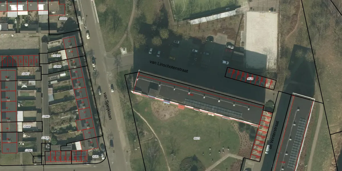 Het perceel waarop van Linschotenstraat 2 staat heeft een oppervlakte van 4270 m². Dit is een zeer groot perceel. De perceeloppervlakte wordt geregistreerd door het Kadaster. Gedetailleerde informatie over de maten van dit perceel kunt u vinden in het rapport Kadastrale kaart met maatvoering van van Linschotenstraat 2.