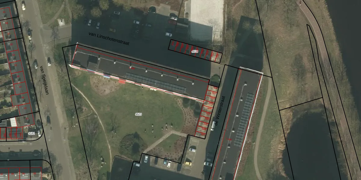 Het perceel waarop van Linschotenstraat 39 staat heeft een oppervlakte van 4270 m². Dit is een zeer groot perceel. De perceeloppervlakte wordt geregistreerd door het Kadaster. Gedetailleerde informatie over de maten van dit perceel kunt u vinden in het rapport Kadastrale kaart met maatvoering van van Linschotenstraat 39.
