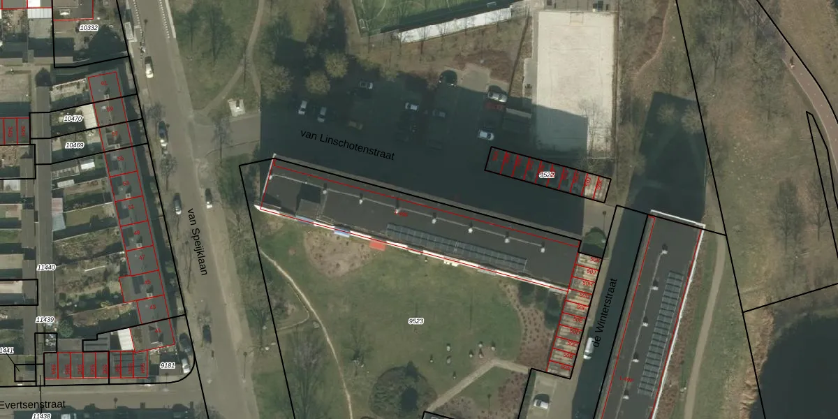 Het perceel waarop van Linschotenstraat 4 staat heeft een oppervlakte van 4270 m². Dit is een zeer groot perceel. De perceeloppervlakte wordt geregistreerd door het Kadaster. Gedetailleerde informatie over de maten van dit perceel kunt u vinden in het rapport Kadastrale kaart met maatvoering van van Linschotenstraat 4.
