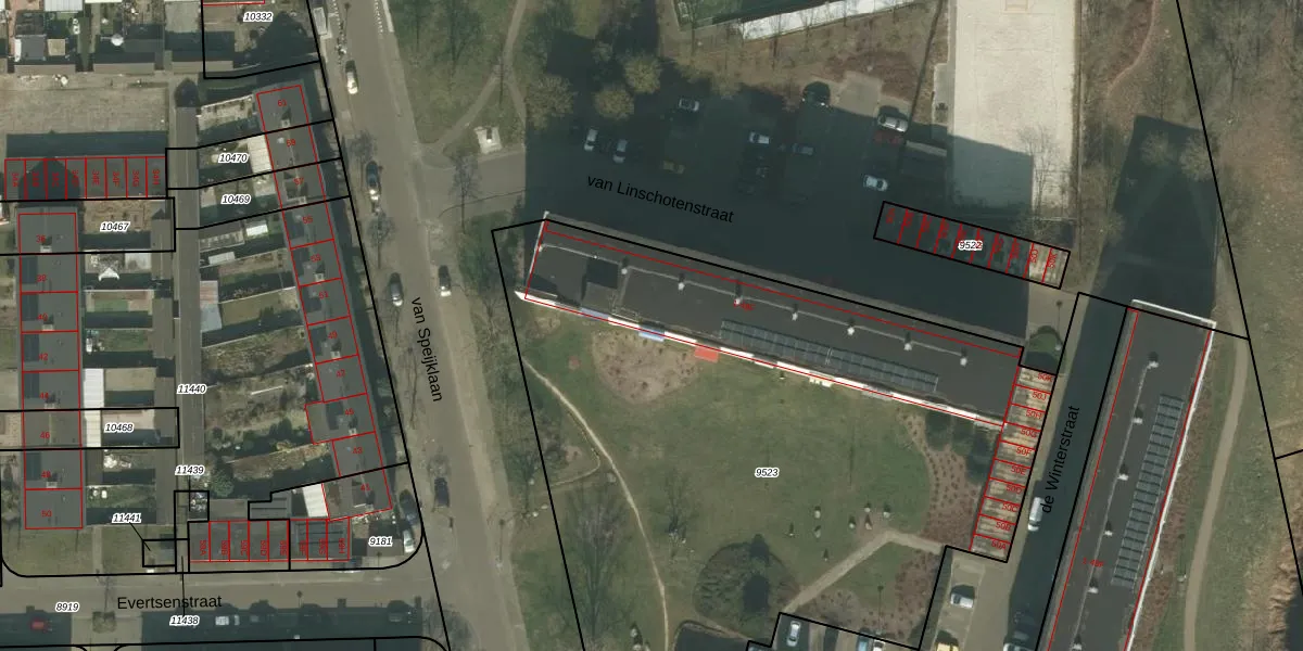 Het perceel waarop van Linschotenstraat 42 staat heeft een oppervlakte van 4270 m². Dit is een zeer groot perceel. De perceeloppervlakte wordt geregistreerd door het Kadaster. Gedetailleerde informatie over de maten van dit perceel kunt u vinden in het rapport Kadastrale kaart met maatvoering van van Linschotenstraat 42.