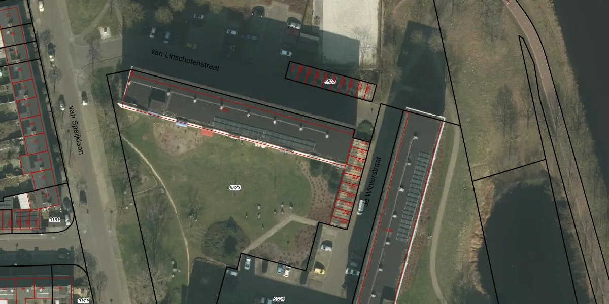 Het perceel waarop van Linschotenstraat 47 staat heeft een oppervlakte van 4270 m². Dit is een zeer groot perceel. De perceeloppervlakte wordt geregistreerd door het Kadaster. Gedetailleerde informatie over de maten van dit perceel kunt u vinden in het rapport Kadastrale kaart met maatvoering van van Linschotenstraat 47.