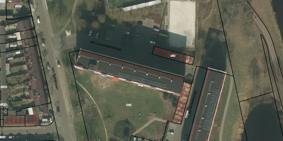 Het perceel waarop van Linschotenstraat 5 staat heeft een oppervlakte van 4270 m². Dit is een zeer groot perceel. De perceeloppervlakte wordt geregistreerd door het Kadaster. Gedetailleerde informatie over de maten van dit perceel kunt u vinden in het rapport Kadastrale kaart met maatvoering van van Linschotenstraat 5.