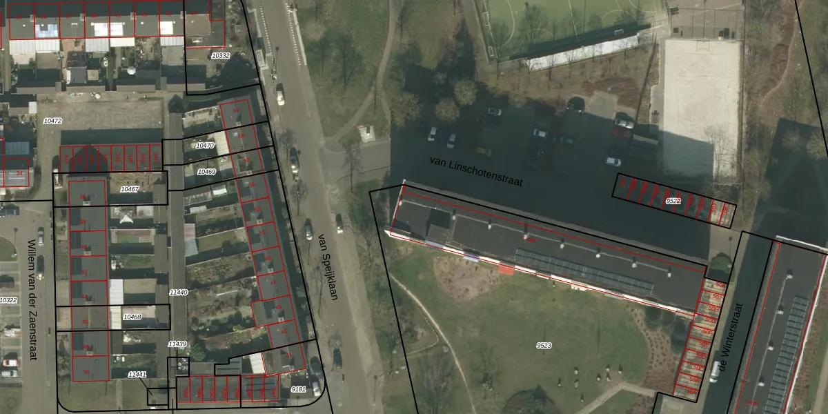 Het perceel waarop van Linschotenstraat 9 staat heeft een oppervlakte van 4270 m². Dit is een zeer groot perceel. De perceeloppervlakte wordt geregistreerd door het Kadaster. Gedetailleerde informatie over de maten van dit perceel kunt u vinden in het rapport Kadastrale kaart met maatvoering van van Linschotenstraat 9.