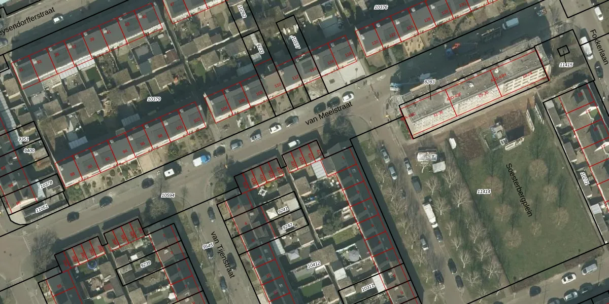Het perceel waarop van Meelstraat 41-H staat heeft een oppervlakte van 2241 m². Dit is een zeer groot perceel. De perceeloppervlakte wordt geregistreerd door het Kadaster. Gedetailleerde informatie over de maten van dit perceel kunt u vinden in het rapport Kadastrale kaart met maatvoering van van Meelstraat 41-H.