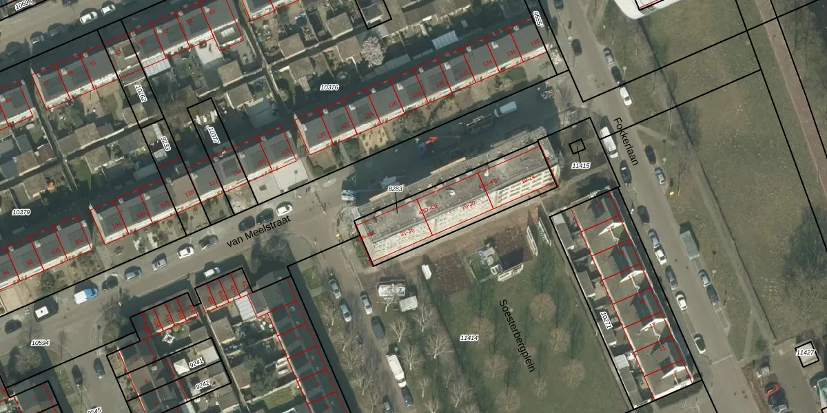 Het perceel waarop van Meelstraat 43-C staat heeft een oppervlakte van 577 m². Dit is een groot perceel. De perceeloppervlakte wordt geregistreerd door het Kadaster. Gedetailleerde informatie over de maten van dit perceel kunt u vinden in het rapport Kadastrale kaart met maatvoering van van Meelstraat 43-C.
