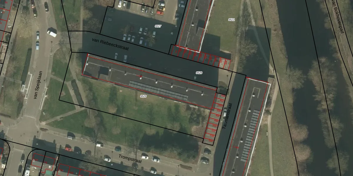 Het adres is gelegen op perceel 9529 in de sectie C en de kadastrale gemeente Helmond. De kadastrale aanduiding is aldus HMD00-C-9529. De oppervlakte van het perceel is 2705 m². Dat is groter dan gemiddeld in Helmond, waar de gemiddelde perceeloppervlakte op 1470,79 m² ligt. De grootste perceeloppervlakte in de kadastrale gemeente is 1,14 km². De kleinste oppervlakte bedraagt 0 m². Op het perceel zijn 64 adressen aanwezig. De huidige grenzen van het perceel zijn digitaal in de Basisregistratie Kadaster (BRK) geregistreerd op 14-01-2009.